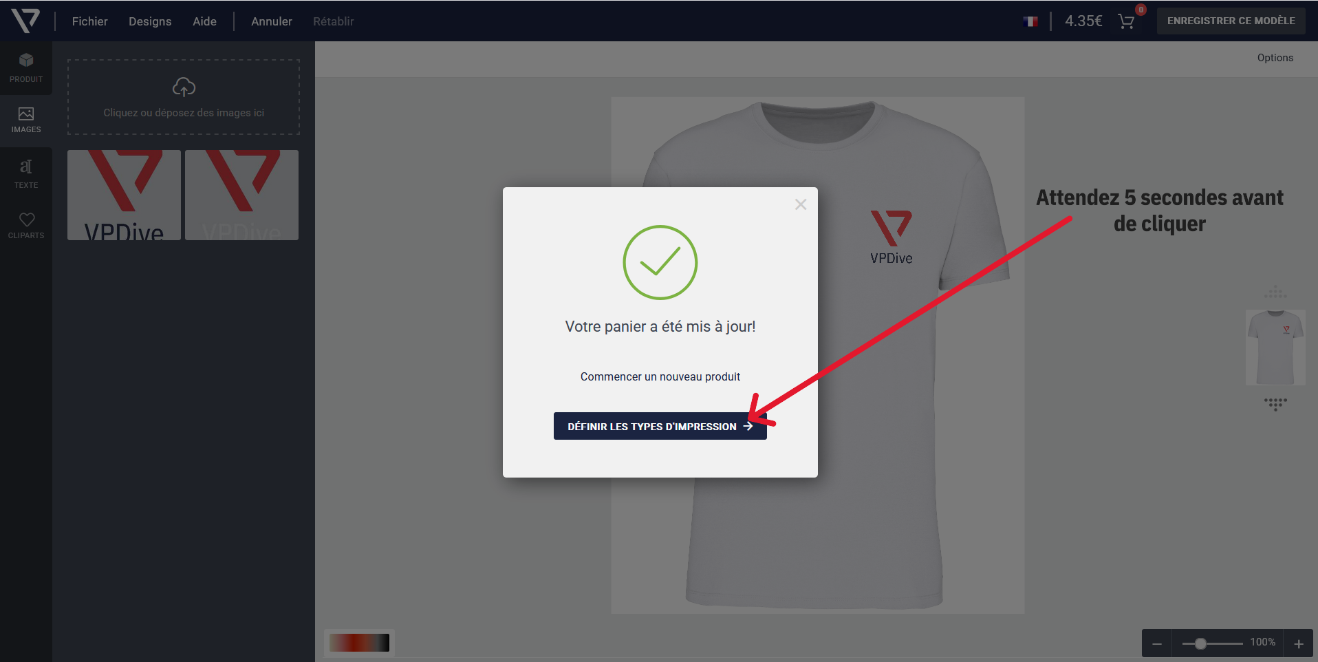 ⚠️ A cause d'un bug de serveur, attendez 5 petites secondes avant de cliquer sur "Définir les types d'impression"